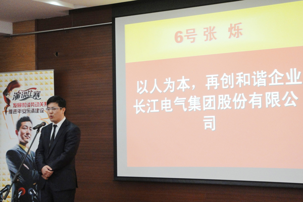 本报讯 11月30日,集团员工张烁代表公司参加了以“发展和谐劳动关系,推进平安乐清建设”为主题的演讲比赛,并在27名参赛选手中名列第5,获-了三等奖,据悉,该演讲比赛由市劳动和社会保障局、市总工会联合主办,旨在切实维护用人单位和劳动者的合法权益,进一步发展和谐劳动关系,促进社会和谐稳定。