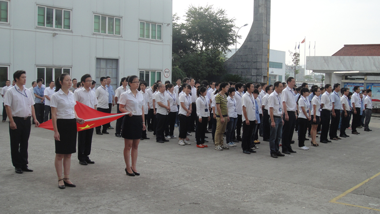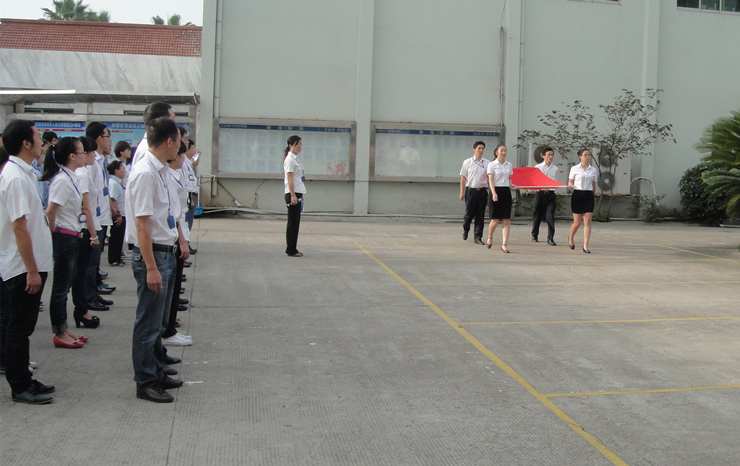 7时30分,九游(中国)“庆‘十一’、升国旗、唱国歌”仪式正式开始。由集团2012年度优秀员工代表薛乐平、张碎红、景山墩、胡浩组成的护旗方队正步走向升旗台,在全体干部员工的庄严注目中,一面鲜艳的五星红旗伴随着雄壮的国歌声徐徐升起。鲜艳的国旗迎风招展,国旗下,参加升旗的公司领导与干部职工排成整齐的队伍全体肃立,怀着崇高的敬意和无比自豪的心情绕肷高唱,嘹亮的国歌声响彻园区。冉冉升起的五星红旗,点燃了每个人心中的爱国之情;激昂的国歌,激发出每个人的责任感和奋进豪情。