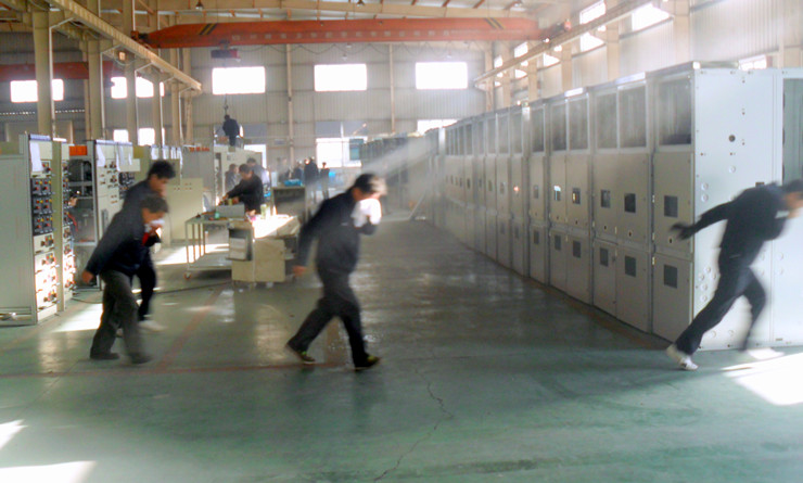 近日,上海公司为配合消防日教育活动,在公司内开展了一次消防演练。根据演练计划,当日上午十时,成套电气组装车间内烘箱温控失灵致使加热温度过高,导致烘箱着火。着火的烘箱紧靠着木质的门框,火势一旦蔓延后果不堪设想。组装车间的员工发现火情后,立即将走廊里的电气开关拉断,用车间内存放的灭火器进行扑救并报火警。同时一淮笊呼喊楼内的所有人员停止工作进行撤离。公司消防应急小组的成员在得知火情后,有序分工,有的人拿起走廊里的灭火器灭火,有的人迅速组织楼内的人员进行有序撤离。