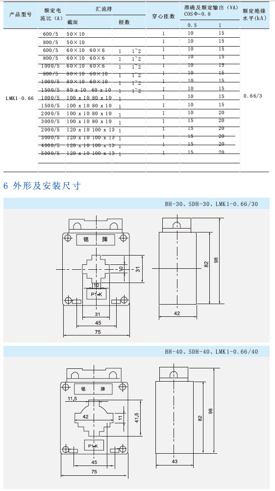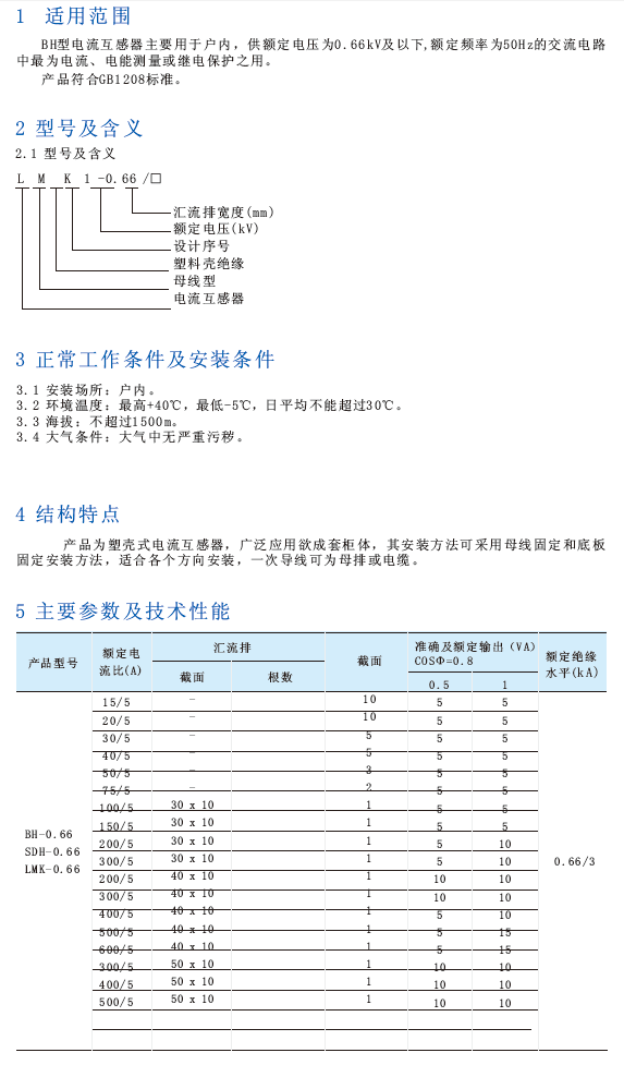 BH、SDH、MK1-0.66型电流互感器