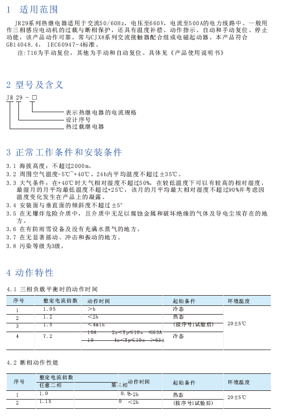 JR29系列热继电器